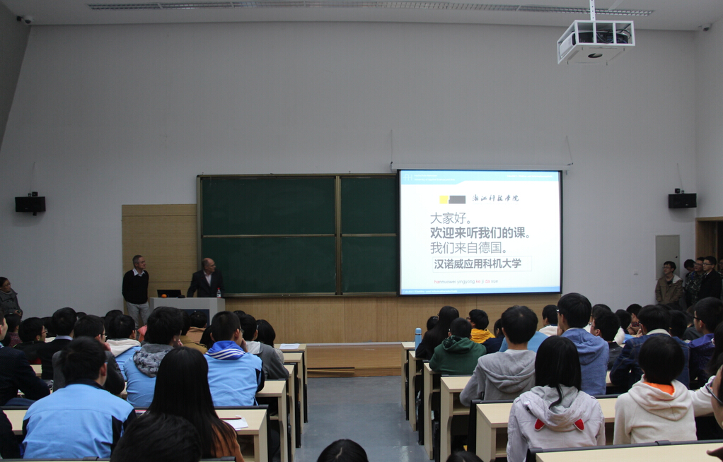 2014年11月10日,来自德国汉诺威应用科学大学的Greife与Steinke教授在我校安吉校区为小宝探花 以及小宝探花 2+3项目和德语专业的大一新生作了主题为德国的大学学习与生活的讲座。