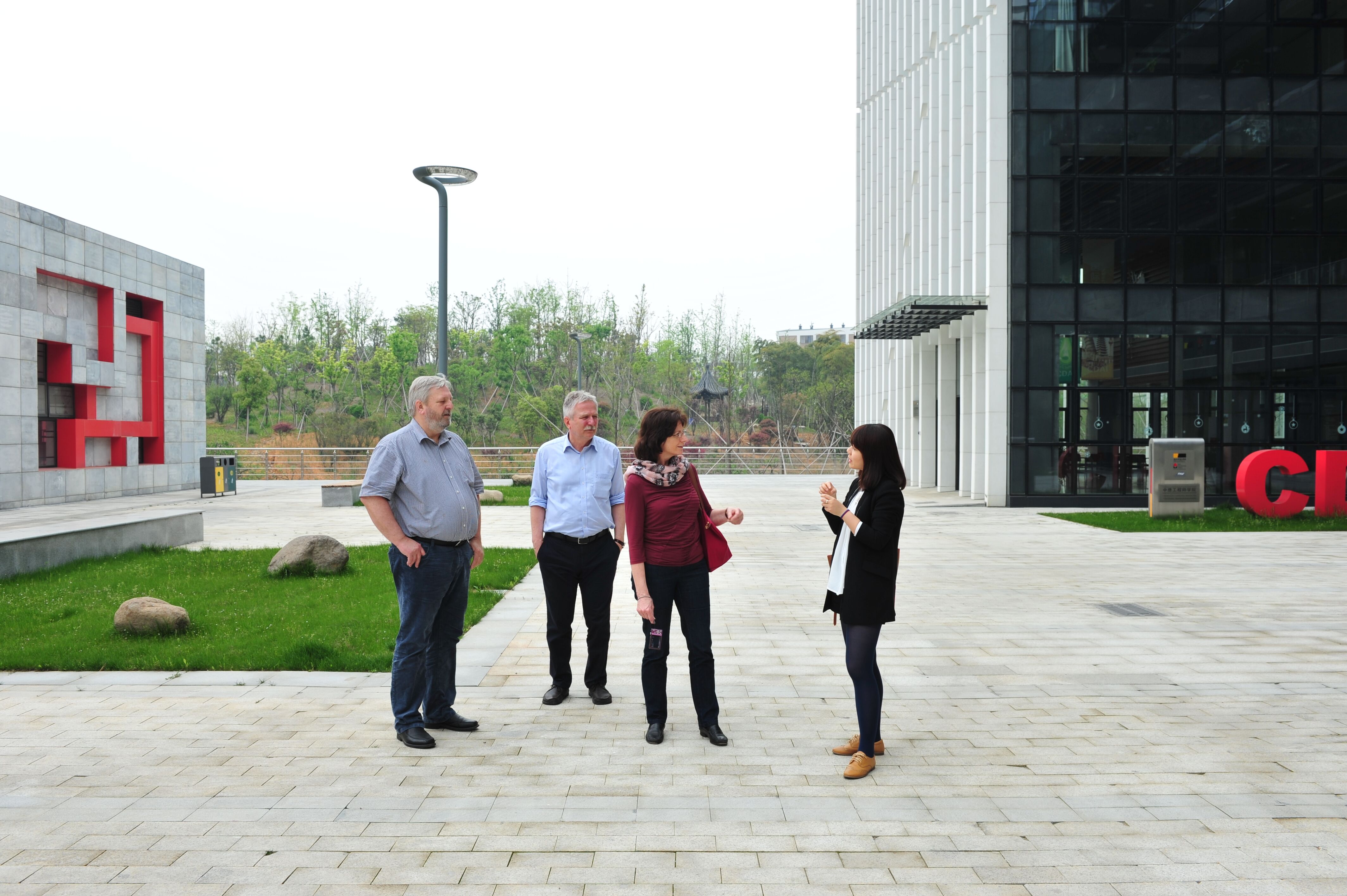 2015年4月18日,来自德意志学术交流中心土木工程专业的两位评估专家Löns女士、Maurial先生以及合作院校吕贝克应用科技大学副校长Litz先生一行,在小宝探花 土木工程专业负责人文献民老师的带领下,莅临参观了浙江科技学院安吉校区。当天他们察看了小宝探花 办公室、学院学生专业教室及以及I-Cubic咖啡吧等学院设施。参观过程中,他们盛赞安吉校区风景优美,是学习的好地方。对于学院I-Cubic咖啡吧努力创造外语学习环境的举措,也表示了肯定。