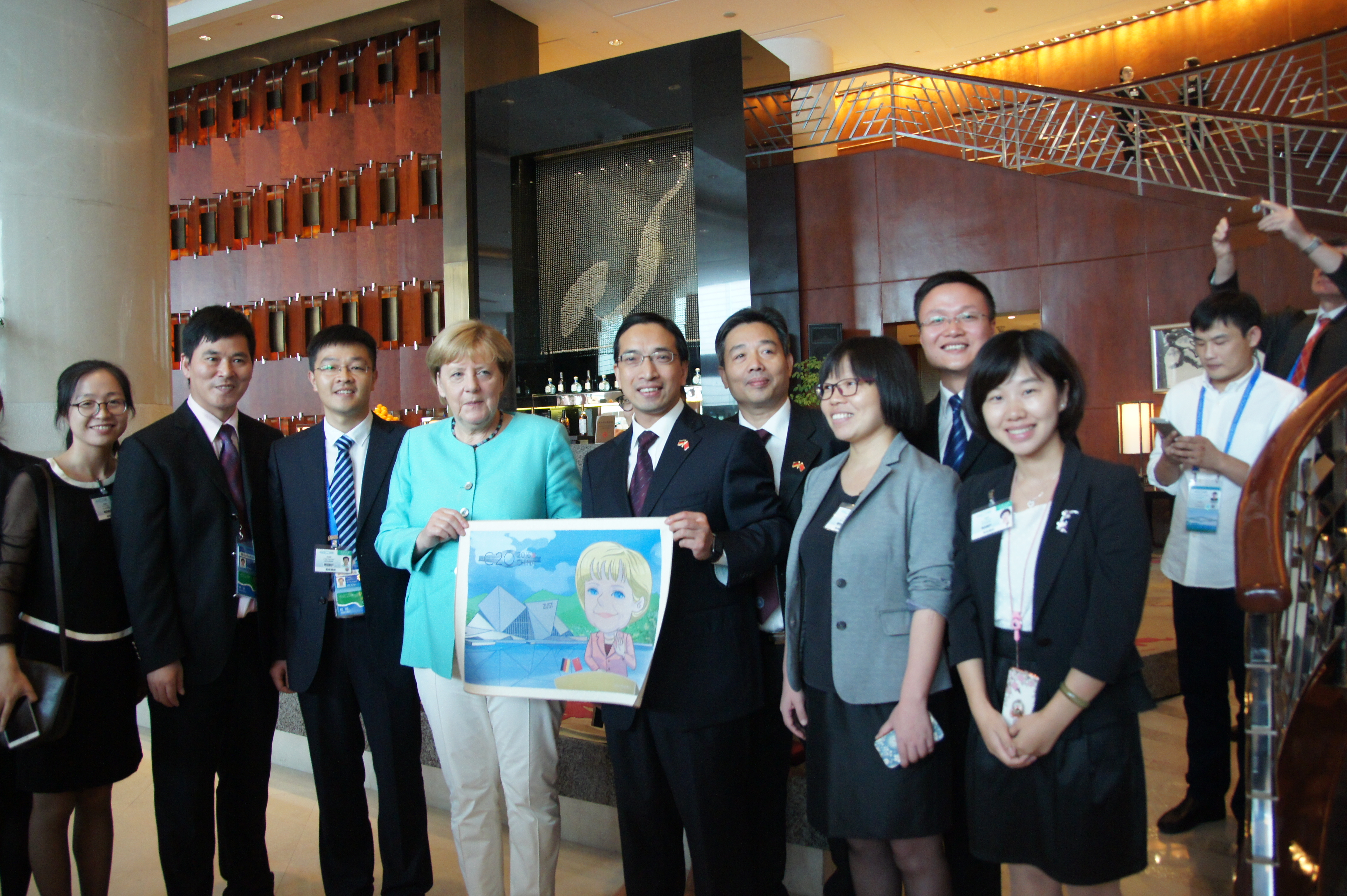 事实证明,辛苦没有白费,付出终有回报。G20峰会浙科院接待小组表现出色,未出任何纰漏,得到了主办方、外交部和杭州市外办的高度赞誉。德国总理默克尔在入住凯悦酒店期间,对接待小组的工作赞赏有加,并主动提出与团队成员合影留念。一张照片,成为了对大家辛勤付出的最好褒奖。