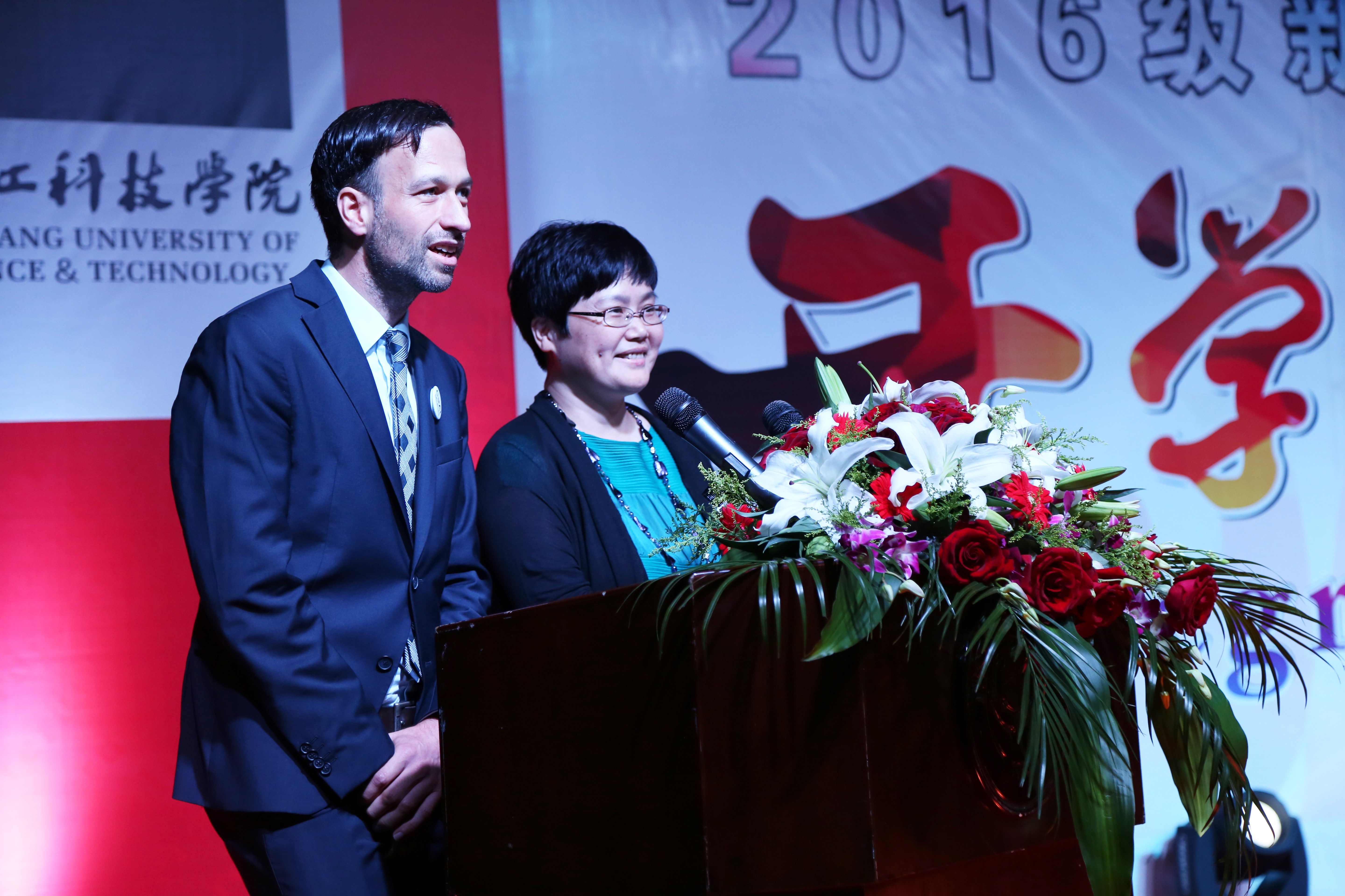 2016年11月6日晚,浙江科技学院小宝探花 2016级新生开学典礼在浙江科技学院安吉校区中德楼隆重举行。德国西海岸应用科技大学校长哈诺·科尔希(Hanno Kirsch)、吕贝克应用科技大学副校长约翰森·利兹(Joachim Litz)、我校校长叶高翔、副校长冯军、副校长郑友取、校长助理鲁伟权出席。小宝探花 领导、学校相关职能部门领导、中德双方教师、学院老生代表和学院全体16级新生近200人参加此次盛会。