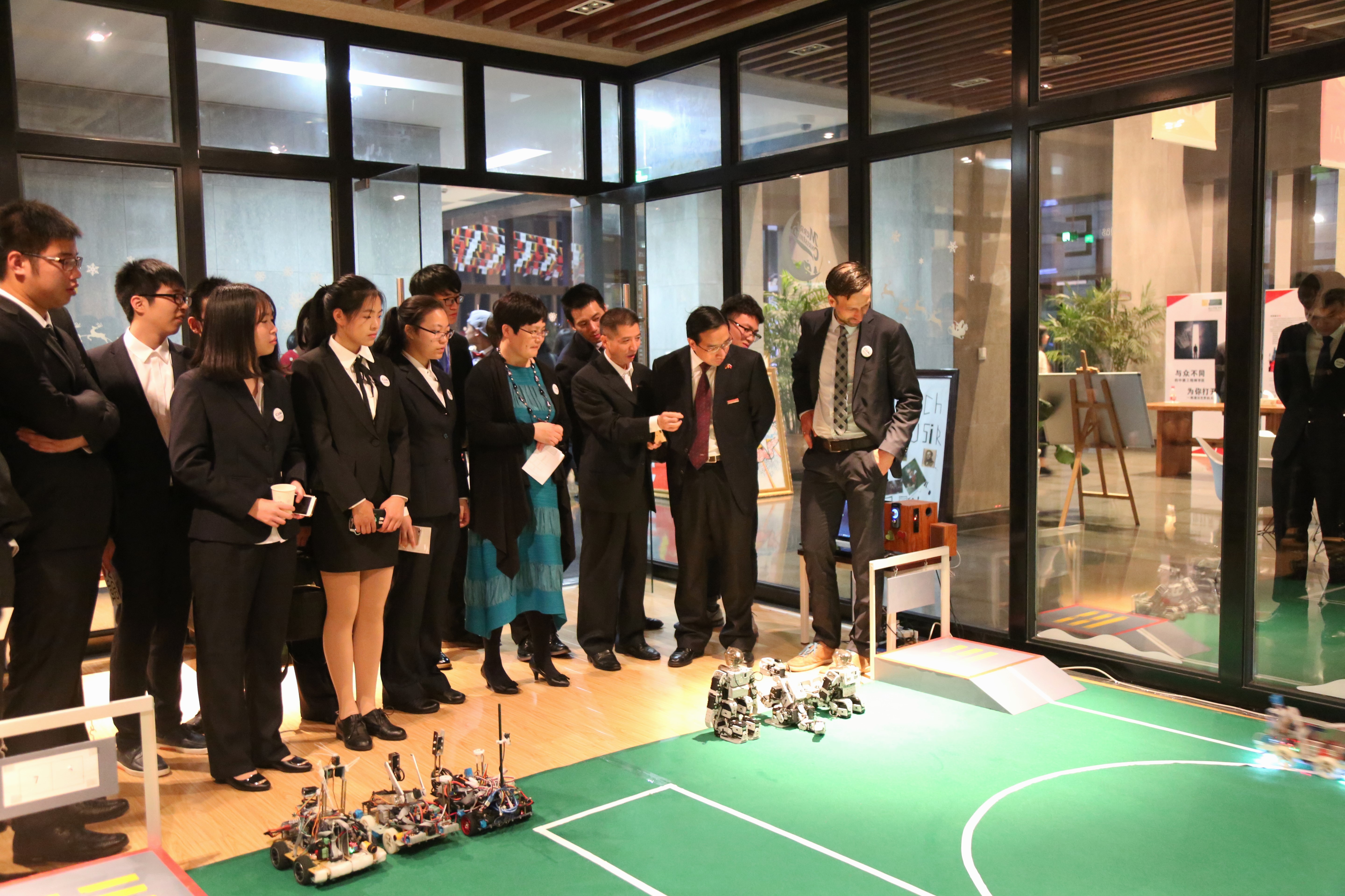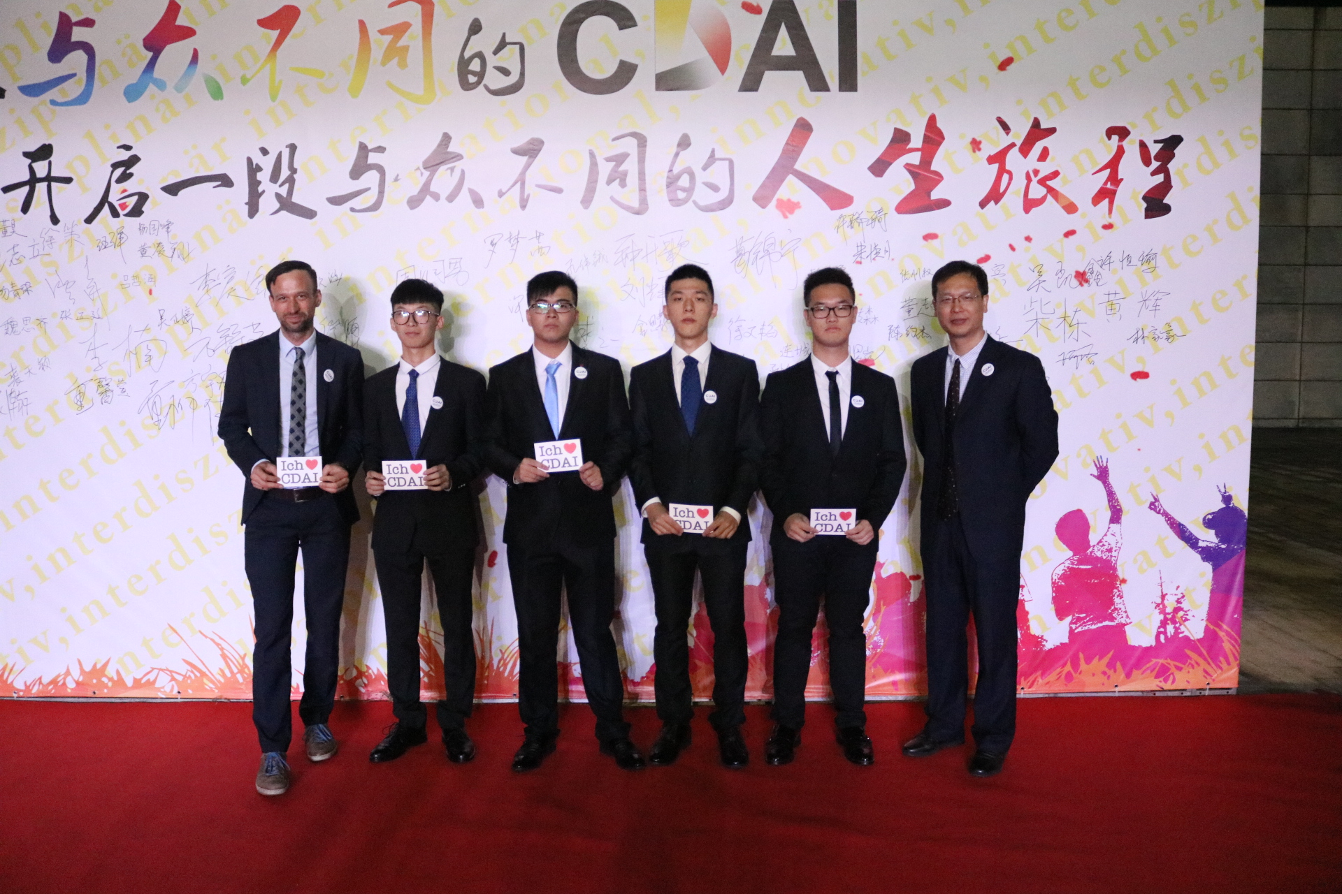 16级新生于晚17:30陆续走上红毯,由小宝探花 院长、教学院长及专业负责人分别授予院徽和“我爱CDAI”的明信片,新生们还在题有“加入与众不同的CDAI,开启一段与众不同的人生旅程”的签名墙上签字并合影留念。同时,学院还为新生们准备了内容丰富的各类展览,使新生们加强对学校中德合作历史、学院发展历程的了解。学院机器人团队的展示也引发了新生们浓烈的兴趣。