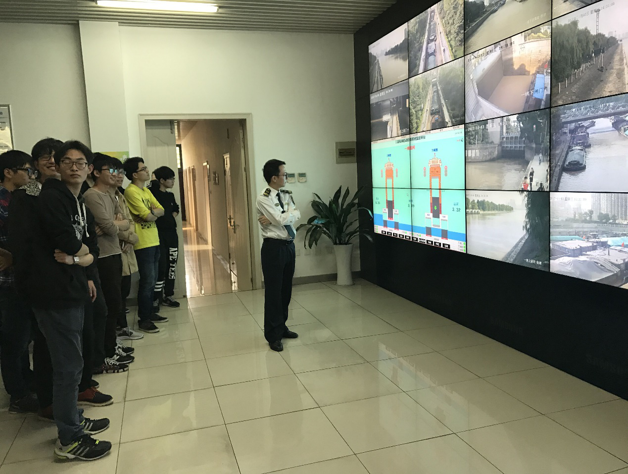 同学们还去船闸控制室现场感受远程观测和操控船闸,以及对船只的调度工作。本次认知实习之旅完美的对课堂教学内容进行了补充,每位同学都表示收获很大。