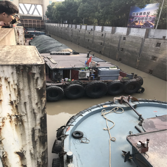 2017年11月3日星期五下午,学院15级土木全体学生在施兹曼教授(Prof. Dr. Sitzmann)、金韶霞老师和沈潇扬老师的带队下,参观了三堡船闸的一线和二线工程和船只从京杭大运河通过船闸到达钱塘江的全过程。