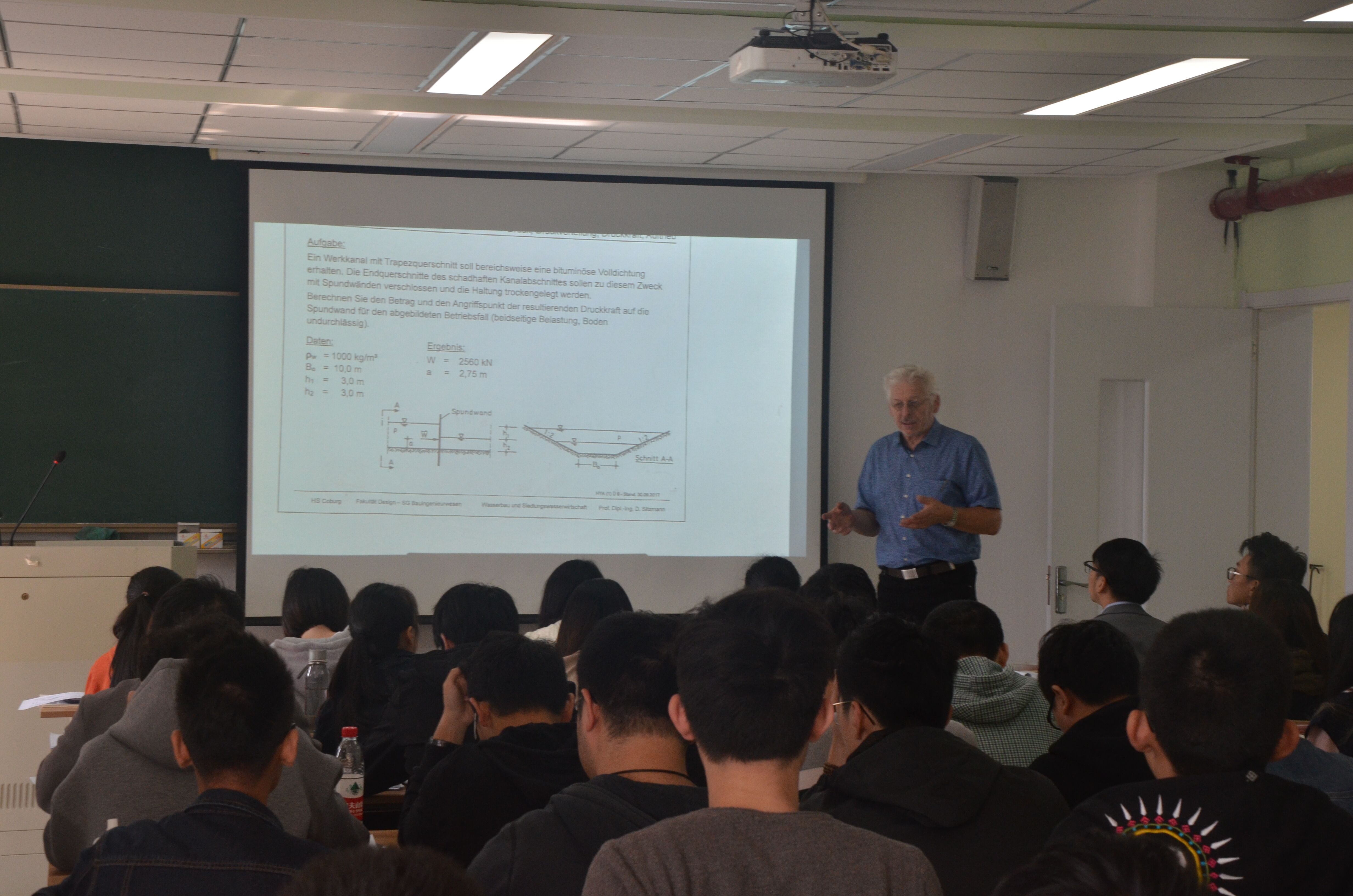 10月23日上午,来自德国科堡应用科技大学的迪特尔•舒兹曼教授开始为小宝探花 15级土木的同学讲授为期两周的《流体力学》课程。这是15级土木专业的同学们第一次经历的德方教授集中授课,同学们非常重视这次集中授课,部分同学在暑假就花时间查询整理了该门课程的相关德语专业词汇,以便于更好地理解这门课程。