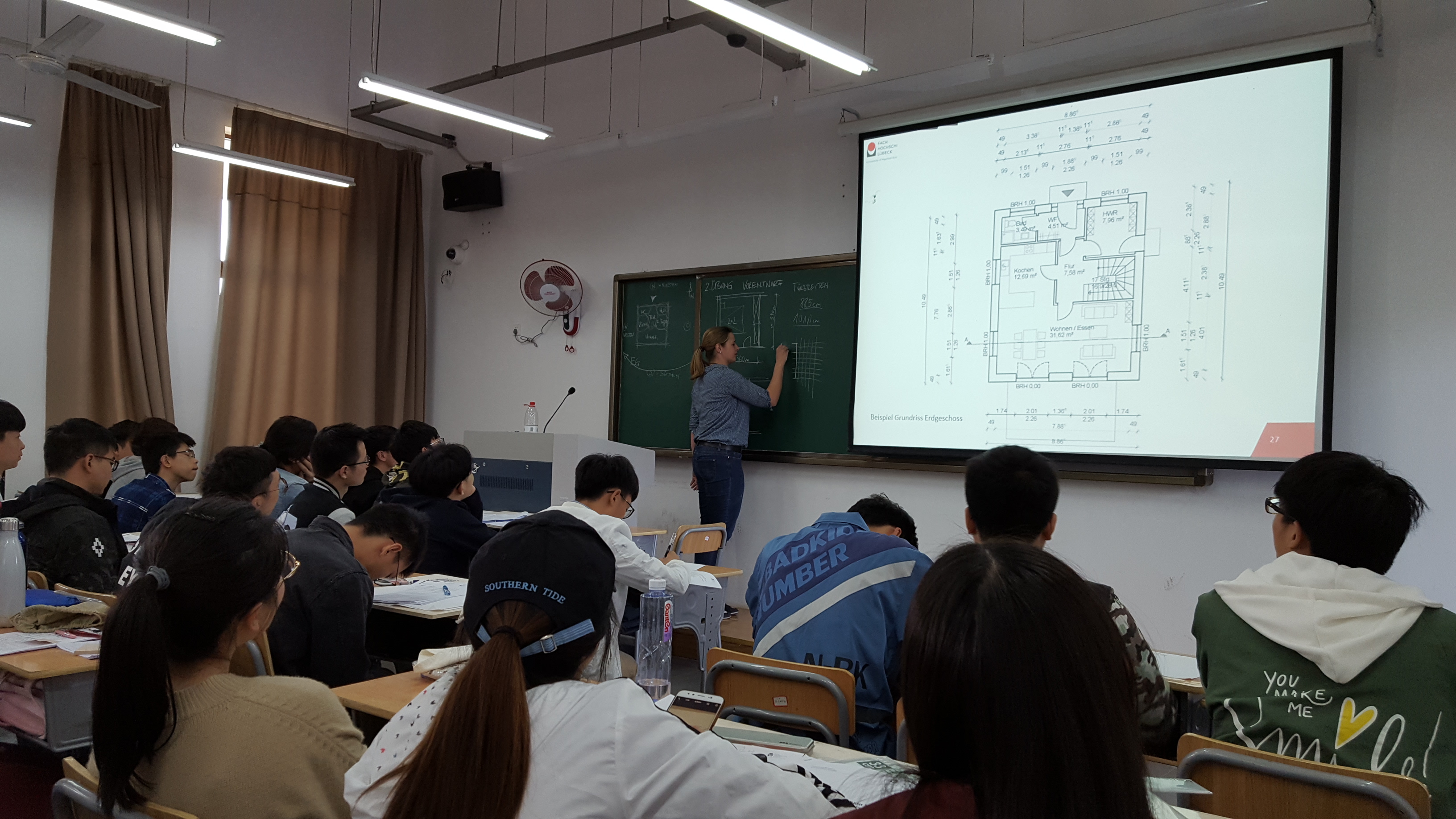2018年4月9日,来自德国吕贝克应用科技大学的助教Jan Osten与Wiebke Martensen,为小宝探花 土木工程专业2016级学生讲授为期一周的建筑构造补充课程。在一周时间内,两位教师充分安排时间进行课程设计教学,以德国普通家庭住宅为例,从最基本的气泡图开始进行设计,逐步将学生心中想象的住宅实现为实际建筑施工图。