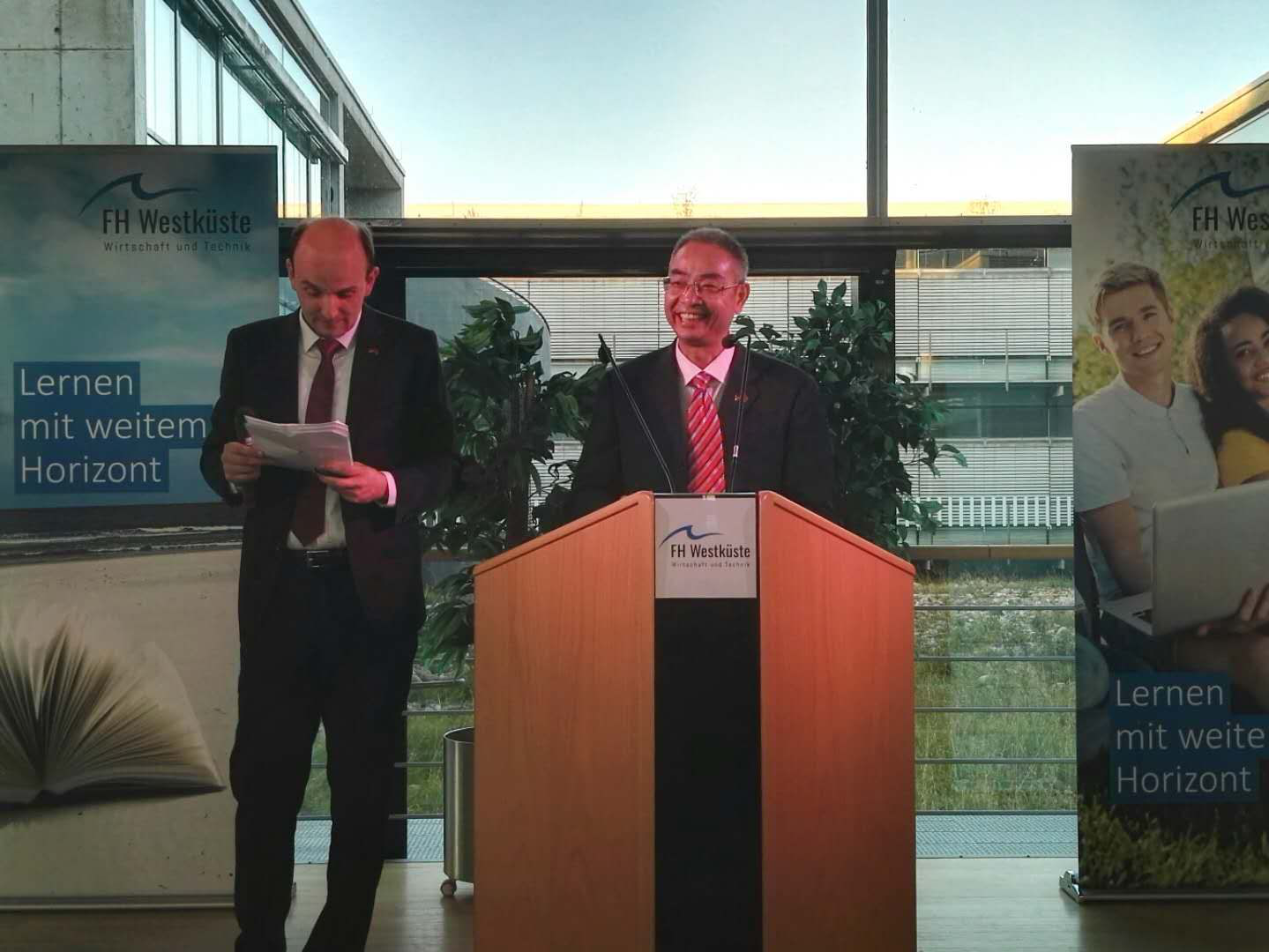 10月11日,校党委书记龚建立与小宝探花 院长徐理勤受邀出席小宝探花 电气专业德国合作高校——西海岸应用科技大学的25周年校庆。龚建立书记作为该校国外合作院校代表致辞,他对两校前期的合作予以高度肯定,并畅想两校未来发展的美好前景。此外,德国石荷州能源农业环境自然和数字化部长艾尔布莱希(Jan Philipp Albrecht)先生,Ditmarschen大区行政首长戴特勒夫斯(Ute Borwieck-Dethlefs)女士,海德市市长史都恩(Michael Stumm)先生等在致辞中对西海岸应用科技大学的国际合作,特别是与我校共建小宝探花 给予了充分的肯定和高度的评价。