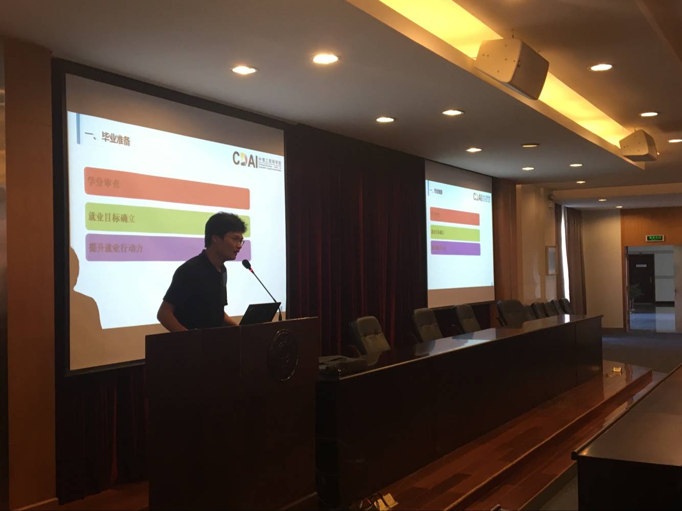 为进一步提高学院2019届毕业生的就业积极性和就业水平,学院学生事务办公室于9月29日下午在行政楼328举行2019届毕业生就业动员大会。就业辅导员沈阳涛首先对毕业学分审查工作进行了提醒;并通过讲解当今大学毕业生的就业形势以及就业过程中的一些社会现象引导学生转变就业观念并提醒学生进一步明确自己的就业方向,树立正确的就业观和择业观;还结合学院自身特点为学生介绍了德国升学的优势以及如何申请德国研究生。