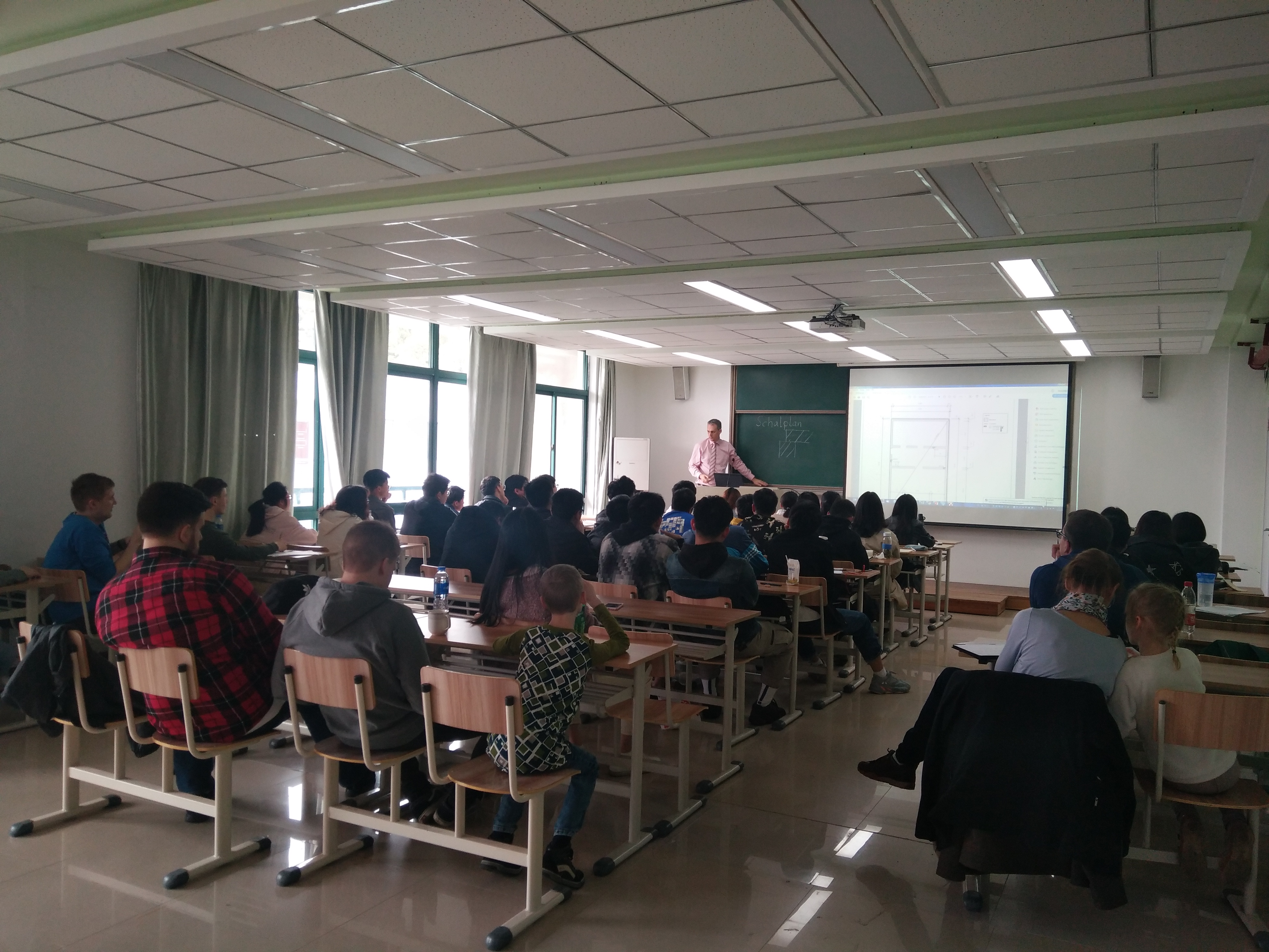 来访期间,德方代表团为小宝探花 土木工程专业16级学生进行承载结构设计的集中辅导课,指导中方学生计算并画出相应的结构图、模板图和配筋图。通过五天的辅导课学习,中方学生进一步了解德国授课的模式和方法,也增进了与德国学生之间的交流。此外,比约恩·埃尔舍教授(Prof. Björn Elsche)、娜迪娜·埃尔舍研究员还为小宝探花 土木工程专业16级学生进行出国选拔考试,共有3名学生成功入选。