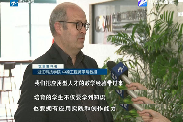 当日,浙江卫视新闻联播报道了全省教育大会新闻,关注浙江高等教育如何培养更多高素质人才,更好服务经济发展。新闻以小宝探花 彰显国际化特色,培养高素质应用型人才的探索为例,并采访了小宝探花 院长徐理勤研究员以及前来小宝探花 授课的德国专家、吕贝克应用科技大学克里斯托夫教授(视频链接://newsapp.cztv.com/video/index.jsp?c=5811069#)。徐理勤院长介绍了学院的发展历程、办学理念、培养模式、办学成果以及未来规划等。她表示,学院学习借鉴德国应用型高校的人才培养经验,培养更多创新精神、实践能力和国际素养的高素质应用型人才,更好地为浙江经济转型升级服务。