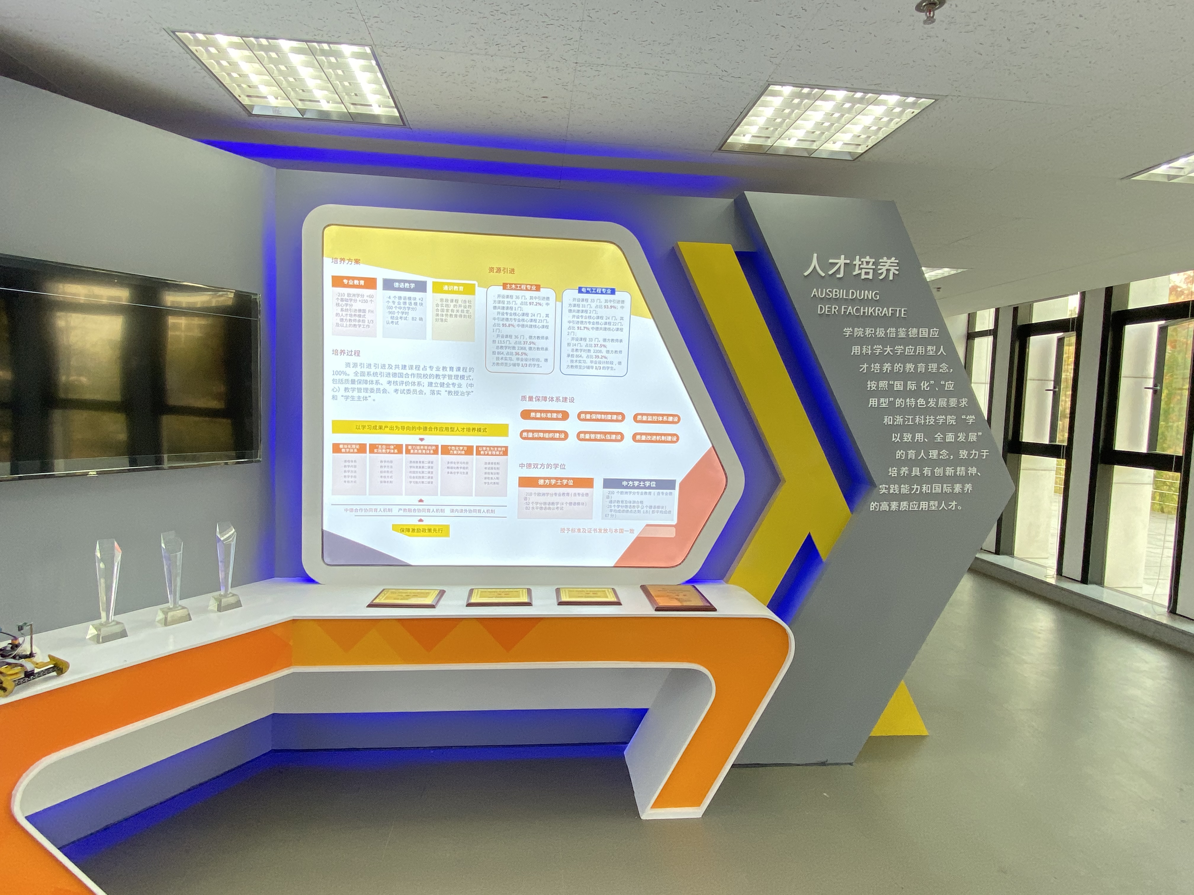 小宝探花 安吉校区为学校更名大学现场考察点之一。为响应学校冲刺更名大学工作总体部署,助力更名大学目标顺利实现,小宝探花 总结过去5年的办学历程和成效,专门设立办学成果布展项目,充分展示学院中德合作的办学经验和相关成果。经过2个多月的努力,项目顺利完工。11月21日,由校资产处组织,监察处、校办、计财处、工会(教代会)代表、小宝探花 等部门派员及供货单位代表,在安吉校区中德楼E座1层/D座1层现场进行项目进行现场验收。验收工作圆满完成。