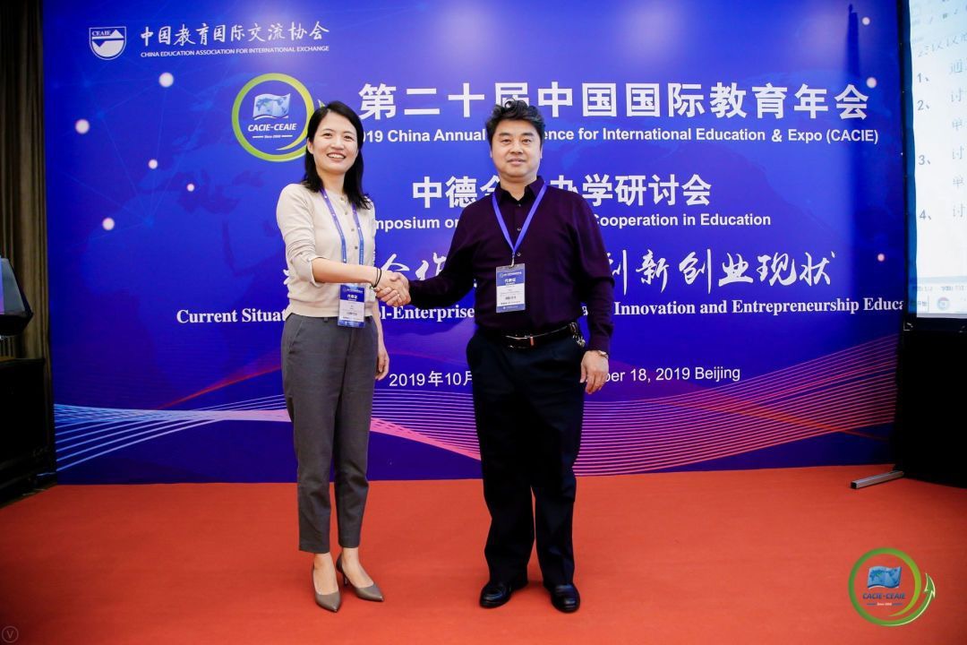 2019年10月17-18日,学院副院长薛文、专业教师金韶霞赴北京参加第20届中国国际教育年会。年会期间,中国教育国际交流协会与中德合作办学高校联盟连续第二年联合举办中德合作办学研讨会。