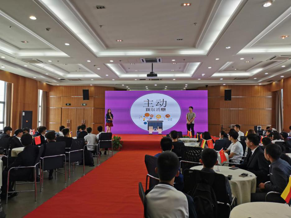 2019年9月9日,学院邀请了留学归来的一名电气学姐和一名土木学长为2019级新生做了一场干货满满的分享会。两位同学从亲身经历出发,以幽默风趣的方式介绍了德语学习、专业课学习、与德国教授沟通、大学学习方法、德国留学等方面,让2019级新生收获颇丰。