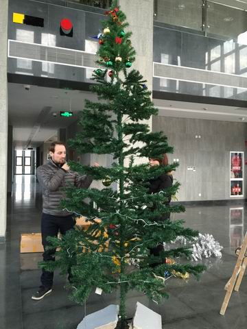 众所周知,圣诞节在西方是最美的家庭节日和最重要的基督教节日之一。为了迎接这一特殊节日的到来,今天小宝探花 的部分同学与留学生Alex一起在中德工程师楼E楼大厅亲自组装并装扮了美丽的圣诞树。下面请欣赏我们的圣诞作吧