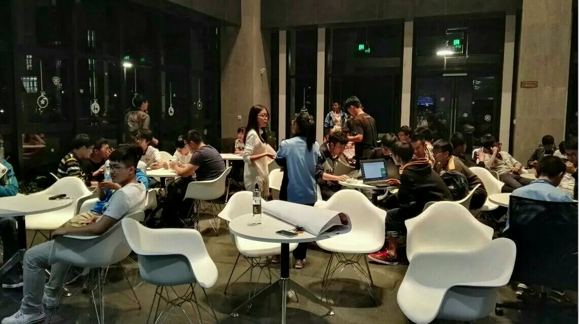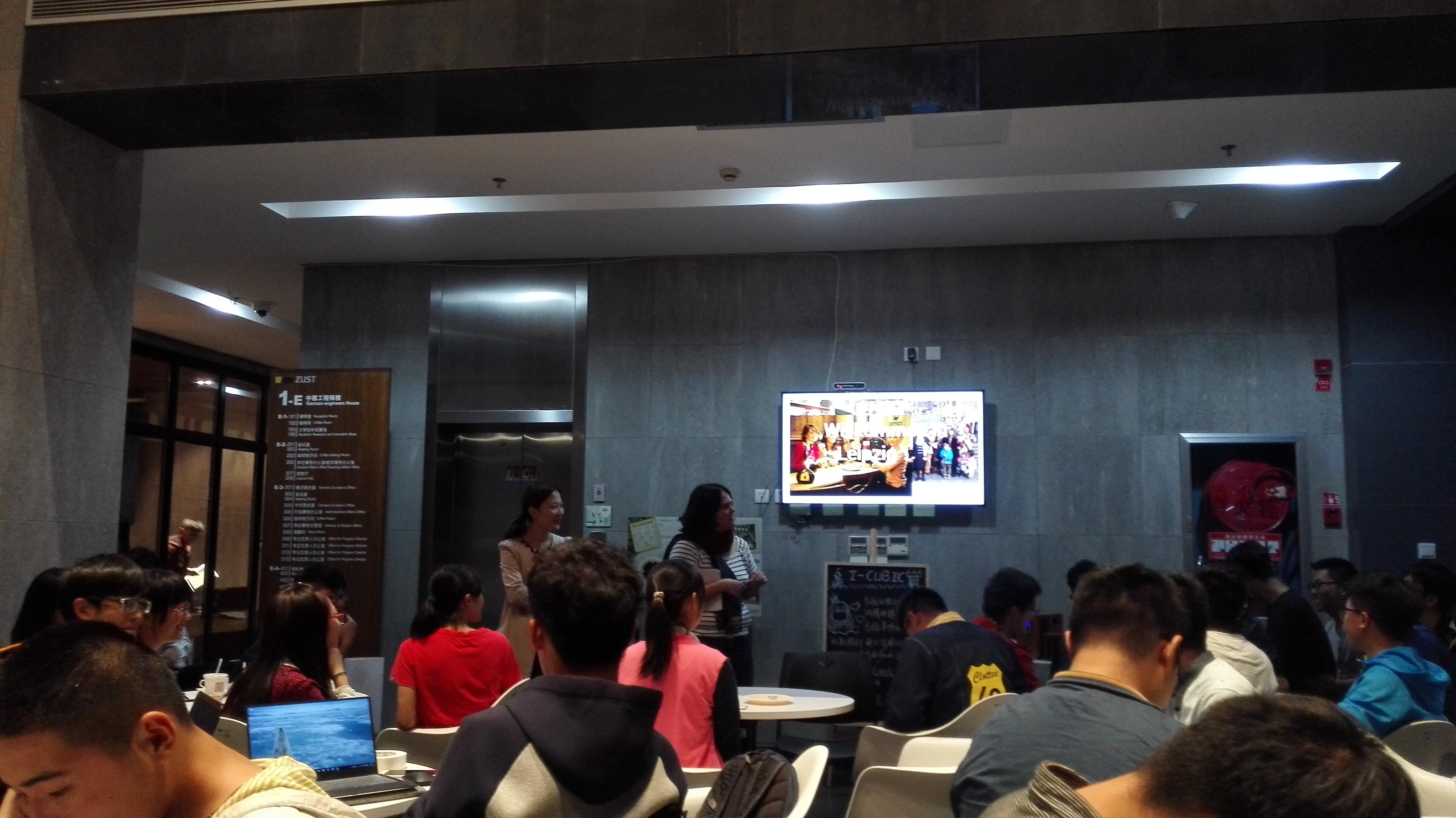 志愿者们早早抵达,搬运桌椅、布置场地、制作咖啡、调试设备。一切准备就绪后同学们陆续赶来,中德工程师E楼大厅座无虚席,大家品尝着咖啡,愉快地交流,期待着同学精彩的演讲。