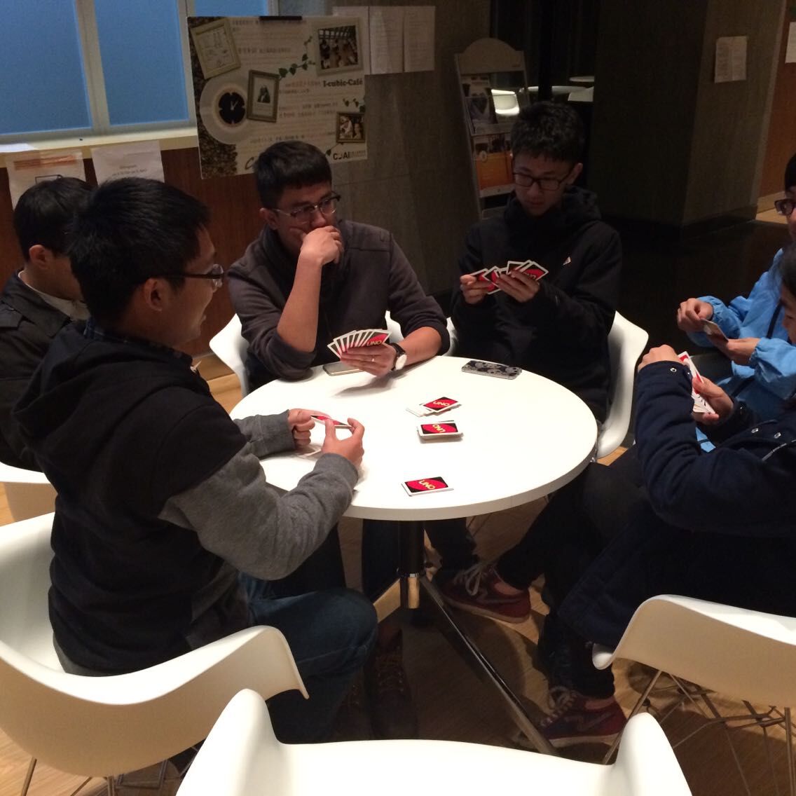 在教学的同时,咖啡吧的工作小组也不闲着,为同学们制作着香醇的咖啡,为同学们提供服务。在学习完这些内容后,大家一起玩起了UNO。激烈的抢牌,新鲜的德语,此起彼伏的笑声在咖啡吧传开了。