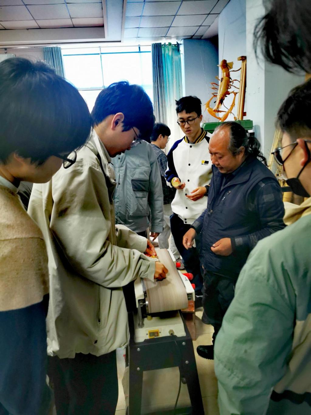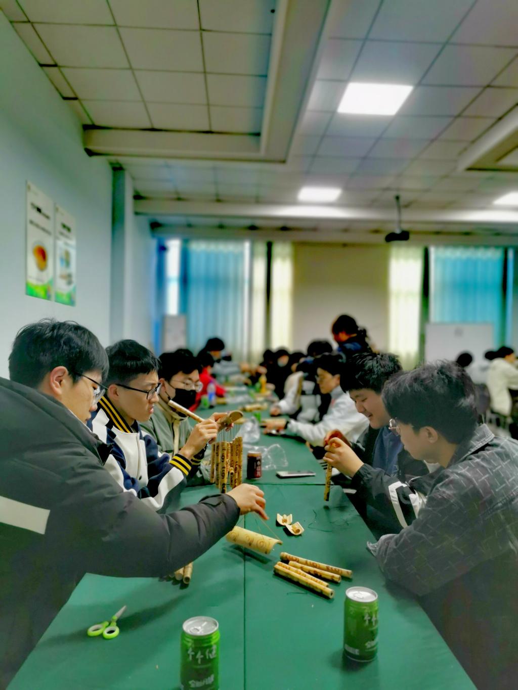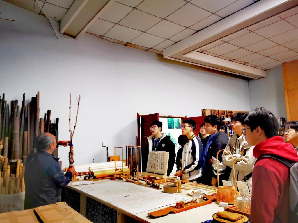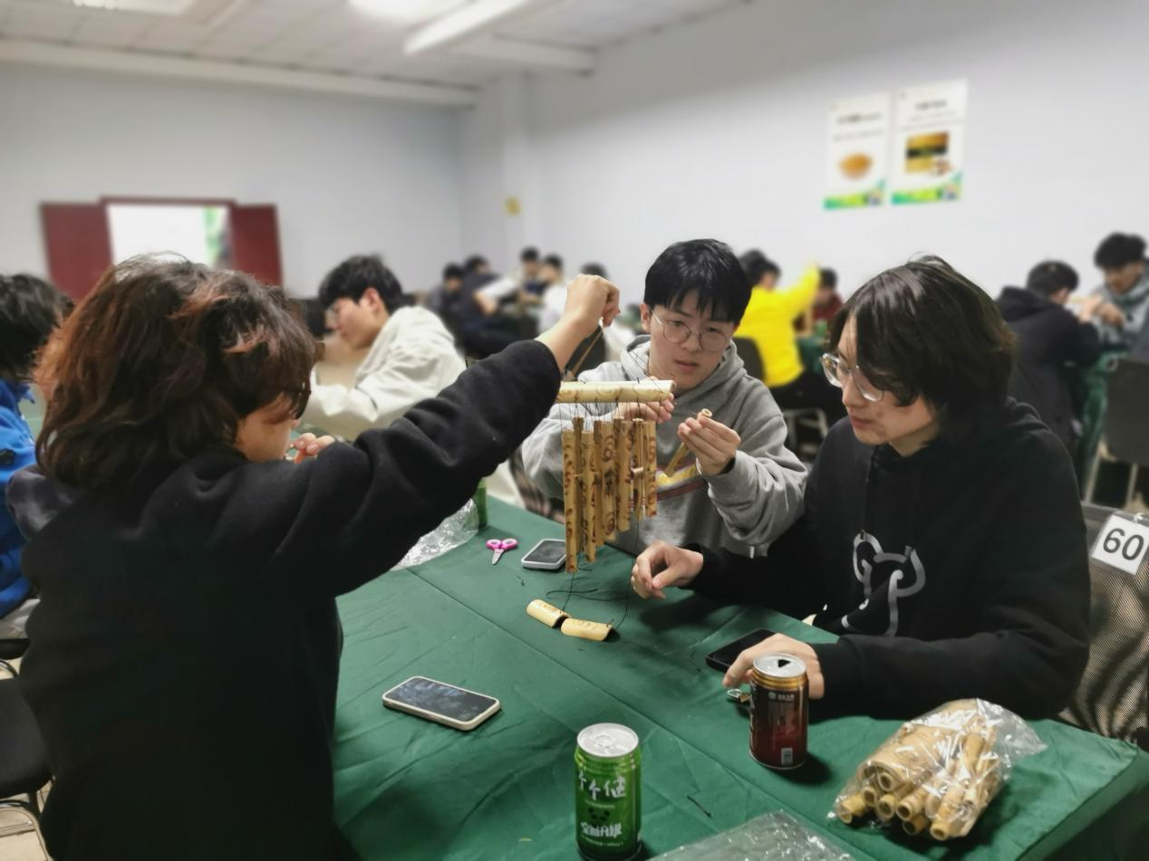 陈老师带领同学们一路参观了实验室和展览中心。在展览中心,同学们对圣氏生物的发展历程有了基本了解,观看了竹子在工业、饮食和日常生活的各项应用,亲眼见识了围绕竹叶黄酮素开发的相关终端产品,并品尝到圣氏生物的明星产品“个个健”和“小红九”竹饮料。竹工坊中,陈老师结合自身丰富的实践经验向同学们介绍了竹子的类型、原材料应用和背后的故事,带领大家体验了竹子的打磨和切割工艺。随后同学们分成小组感受竹风铃制作的乐趣,在意犹未尽的氛围中结束了行程。