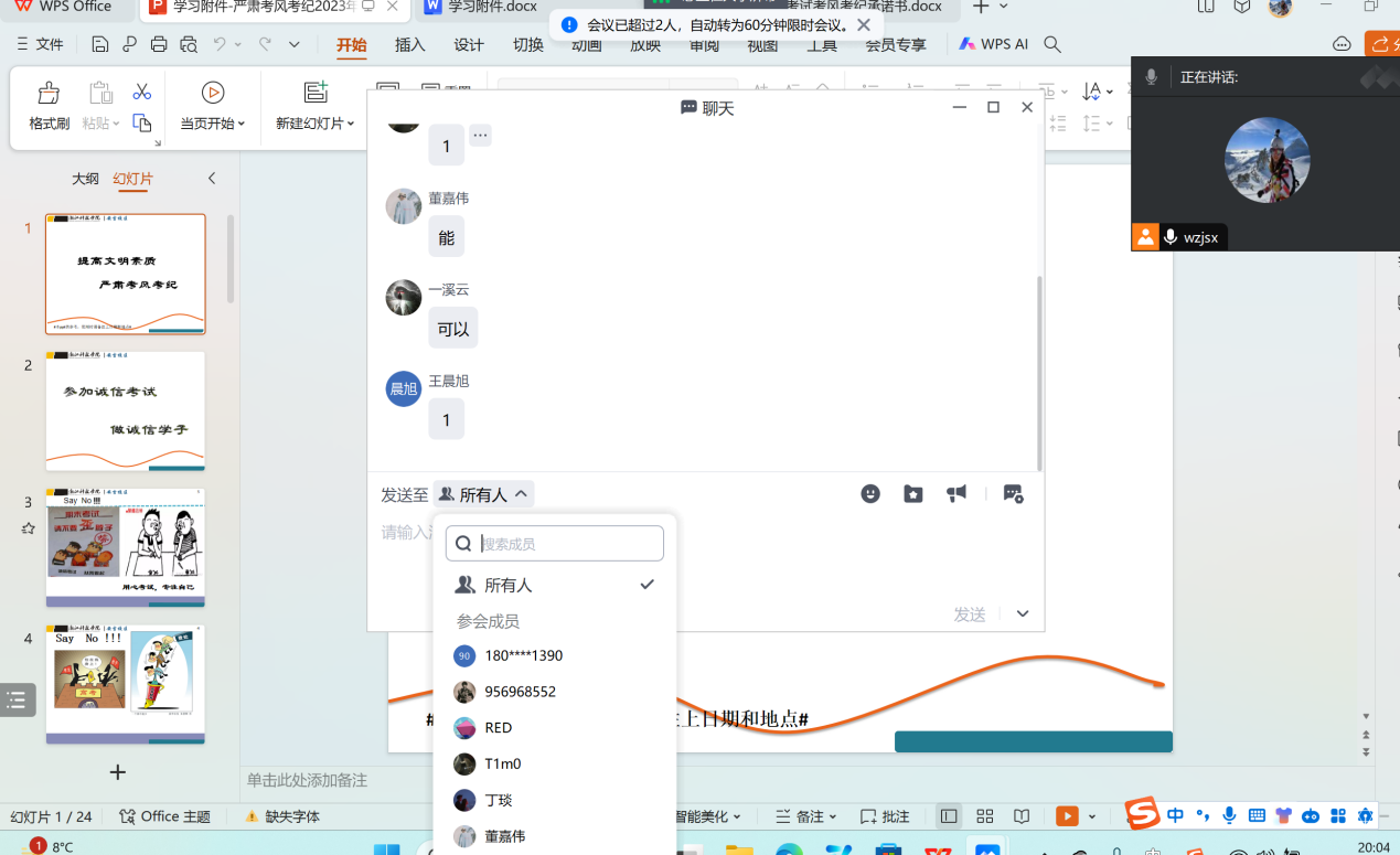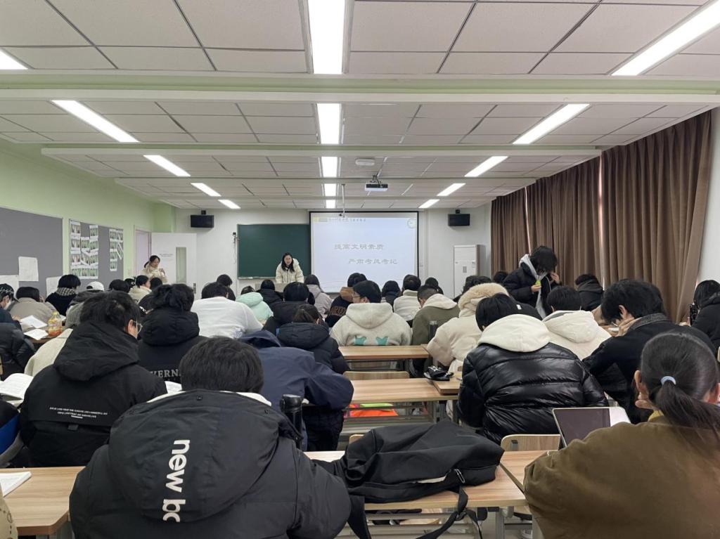 班会上,班主任鼓励大家积极备考,提醒大家关注寝室安全和近期呼吸道传染性疾病,不聚集不扎堆,必要时佩戴口罩。