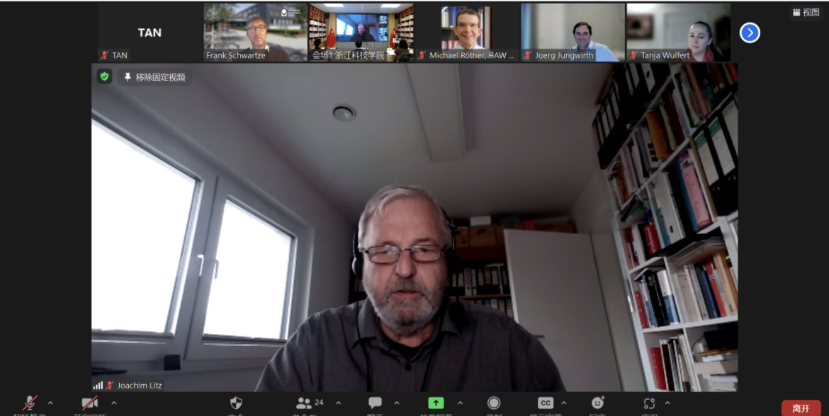 德国吕贝克应用科学大学原副校长、浙江科技学院中德合作委员会主任约阿西姆•利兹(Joachim Johannes Litz)教授致欢迎词。他表示,本次研讨会的参会者虽来自不同国家,却同样肩负着共同的特殊使命:为我们的年轻人提供最好的教育。他希望,通过本次国际研讨会,与会各方都能进一步加强国际合作,努力解决目前国际合作工程教育中的问题。