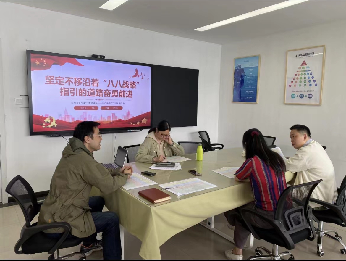 5月8日,小宝探花 直属党支部召开理论中心组会议,就“坚定不移沿着‘八八战略’指引的道路奋勇前行”开展集中学习。会议由直属党支部副书记周扬主讲。