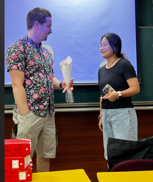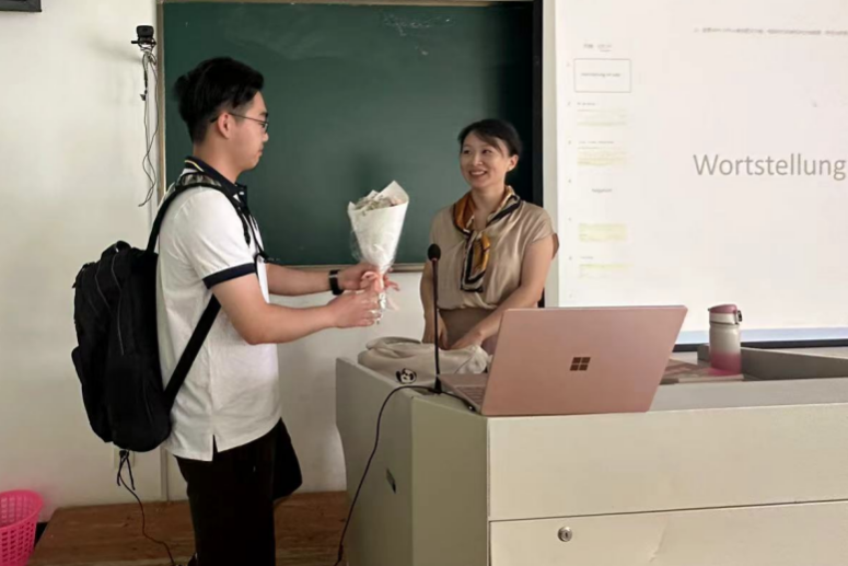 学院在中德E座大厅举办了慰问教职工座谈会,不同学院不同国籍的老师们欢聚一堂,分享心得体会,增进了学院之间的交流;学工部组织学生将教师节花束送给了正在上课的老师,感谢老师们辛勤耕耘,立足三尺讲台,扎根育人热土,培育满园桃李。